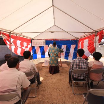 2.穿初めの儀(うがちぞめのぎ):施主様がその土地を耕す用に盛り砂を崩します