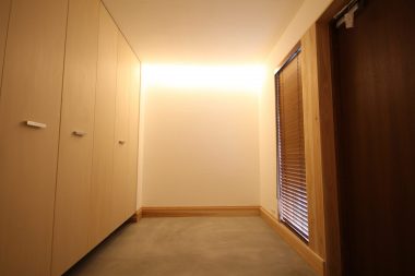 上記のように収納を経由しお部屋に入るスタイルは、コンパクトな設計では有効な手段です。