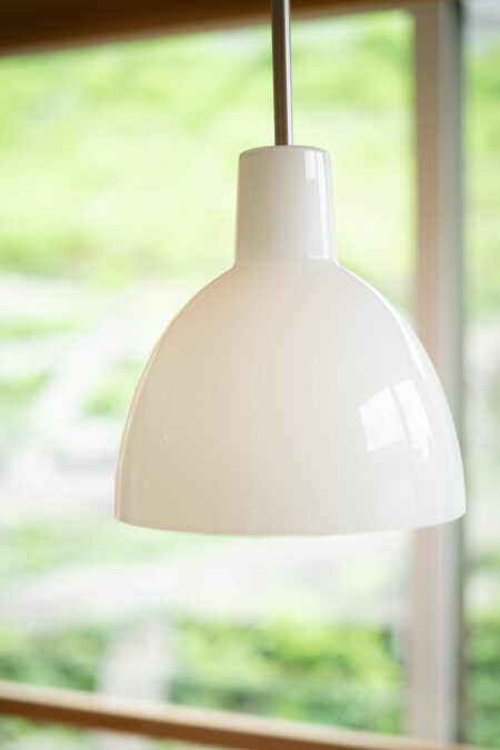 テーブルを照らしながら、乳白ガラスを透過する柔らかい光が上方へ広がります。