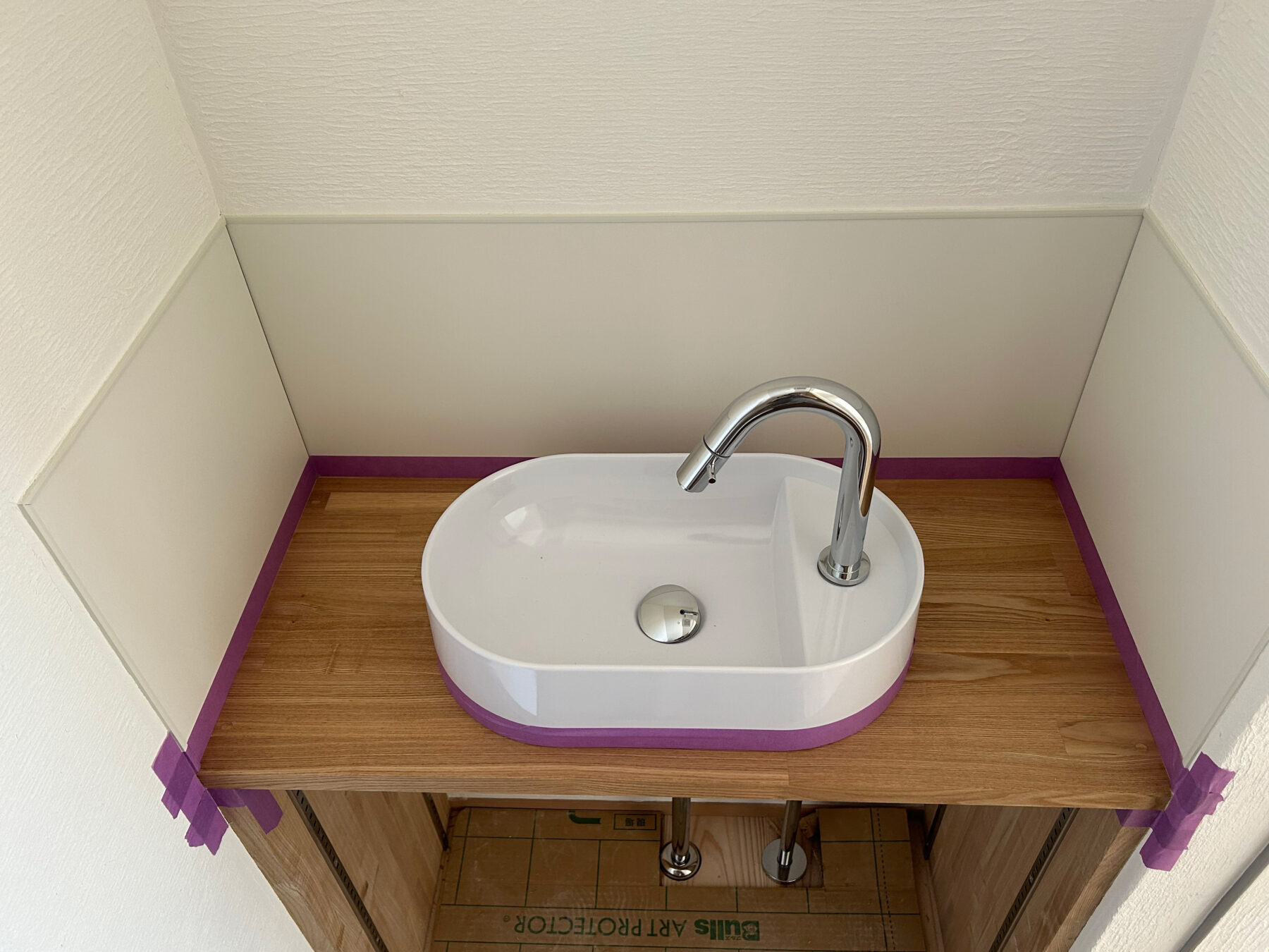 木工事完了時には石膏ボードの下地だったものが、真っ白な漆喰に姿を変え、仕上げには施主様こだわりの照明だったり、オリジナルデザインのパーツの数々が彩られ、どの物件も個性的に仕上がります。
