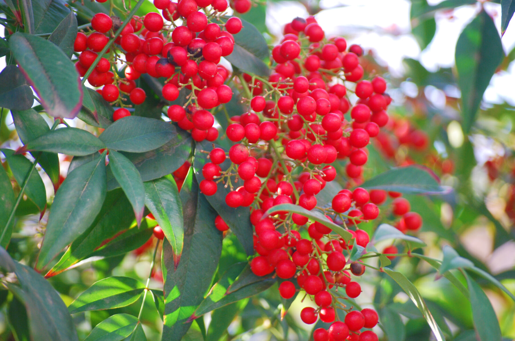 12 月になるとピラカンサス、ナンテン、クロガネモチなど赤い実のついた木をよく見かけます。