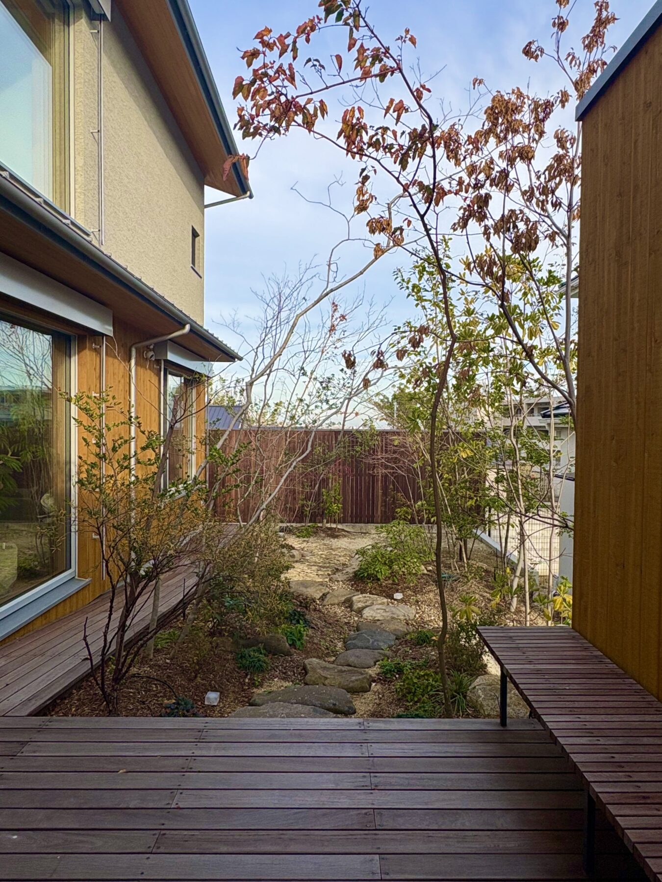 収納小屋としてだけでなく、庭の風景に溶け込み、時には遊び場にもなるような存在になってくれたら、と思いこの小屋を提案しました。
