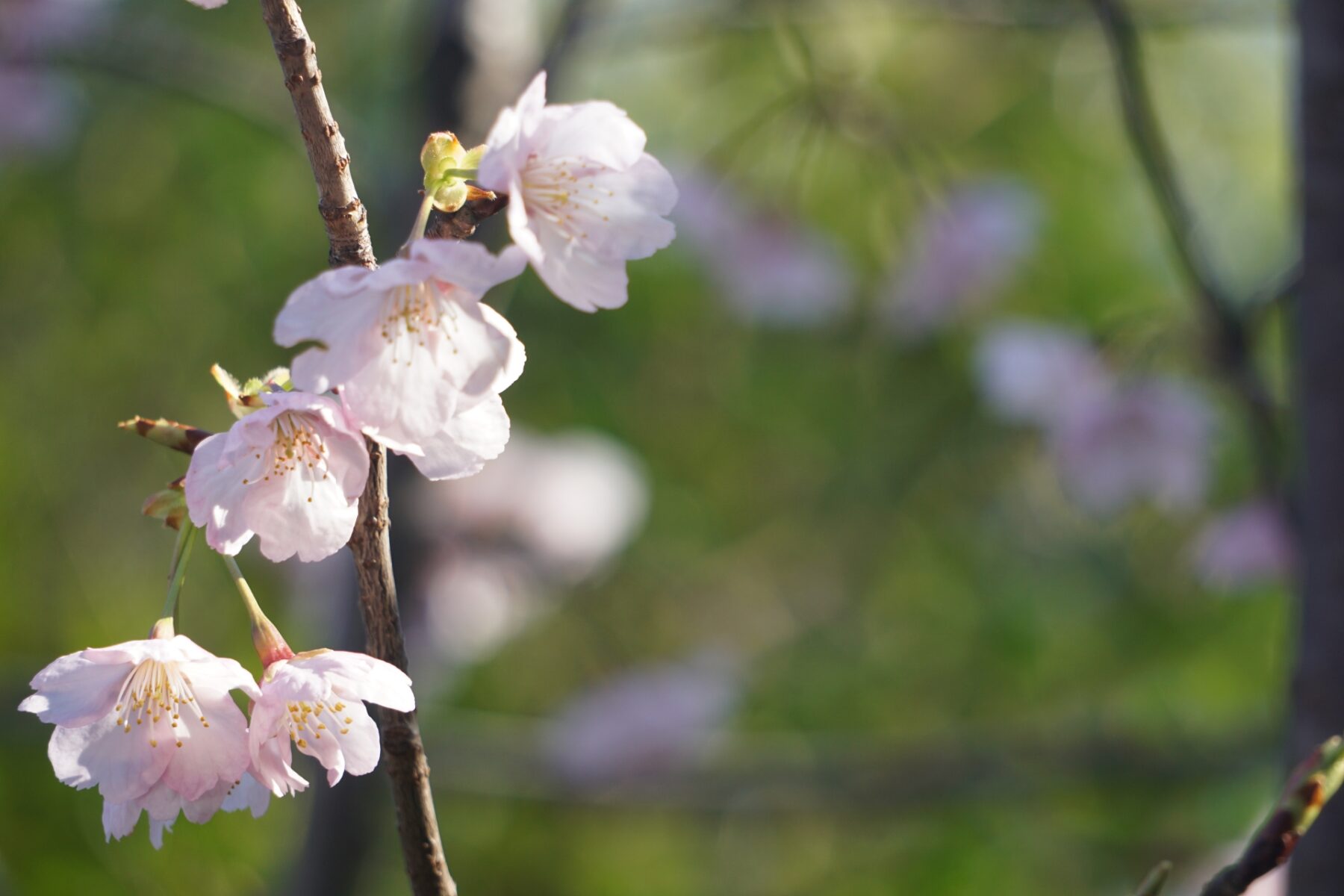葉が一枚もない枝に咲く花々は大変に目立ちます。私たちがそれに目を奪われるのと同じく、昆虫や鳥たちにも見つけてもらいやすいく、その美しい花の色や香りで誘い、蜜を与えて花粉を媒介してもらうことができます。
