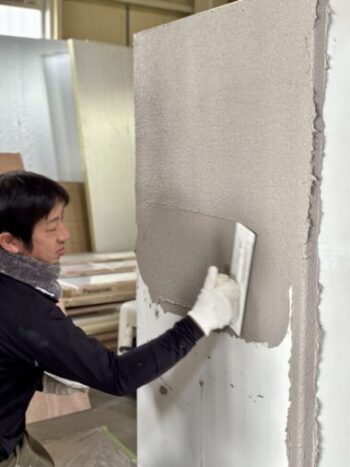 いつもお世話になっている左官屋さんにご協力いただき、サンプルの施工を行いました。