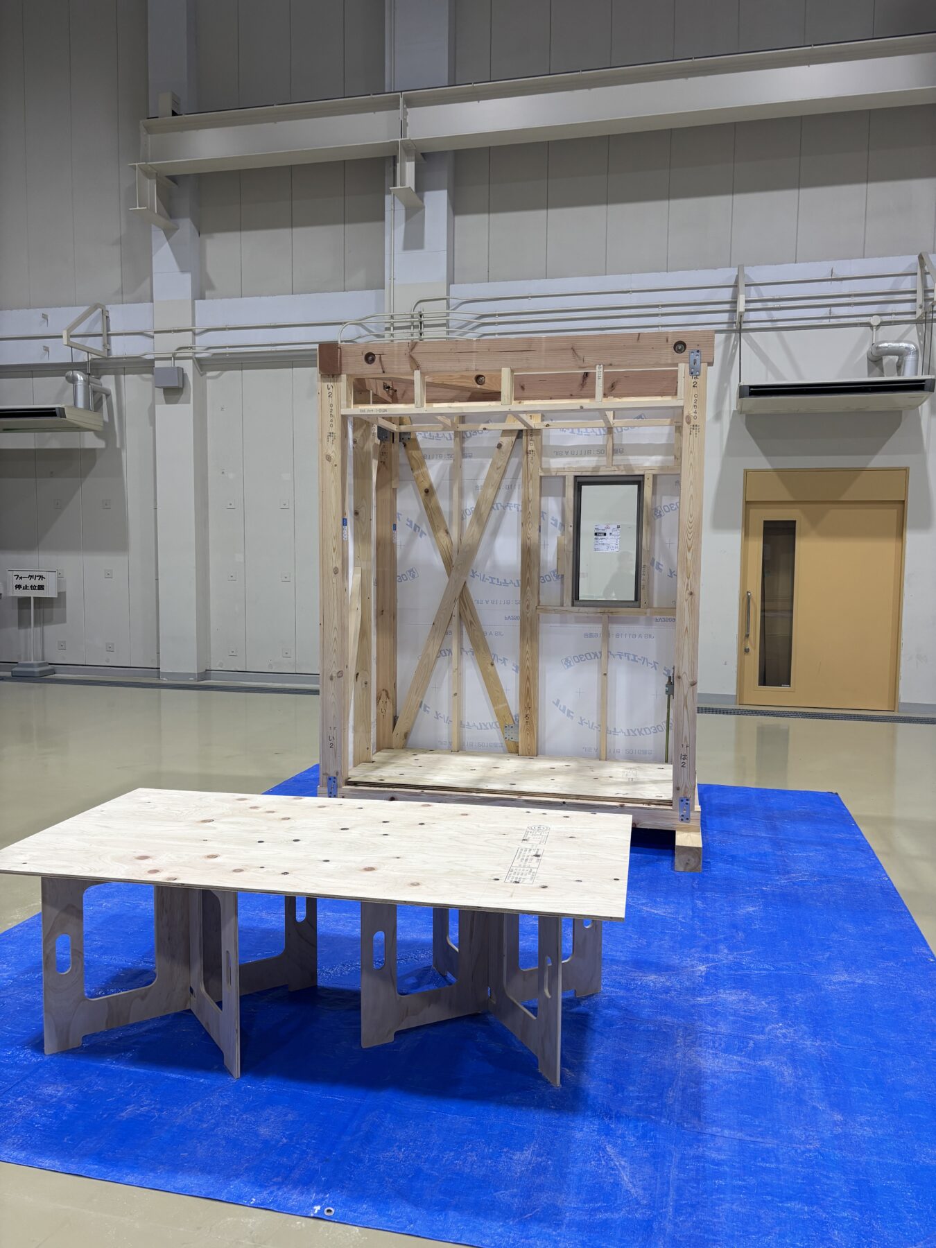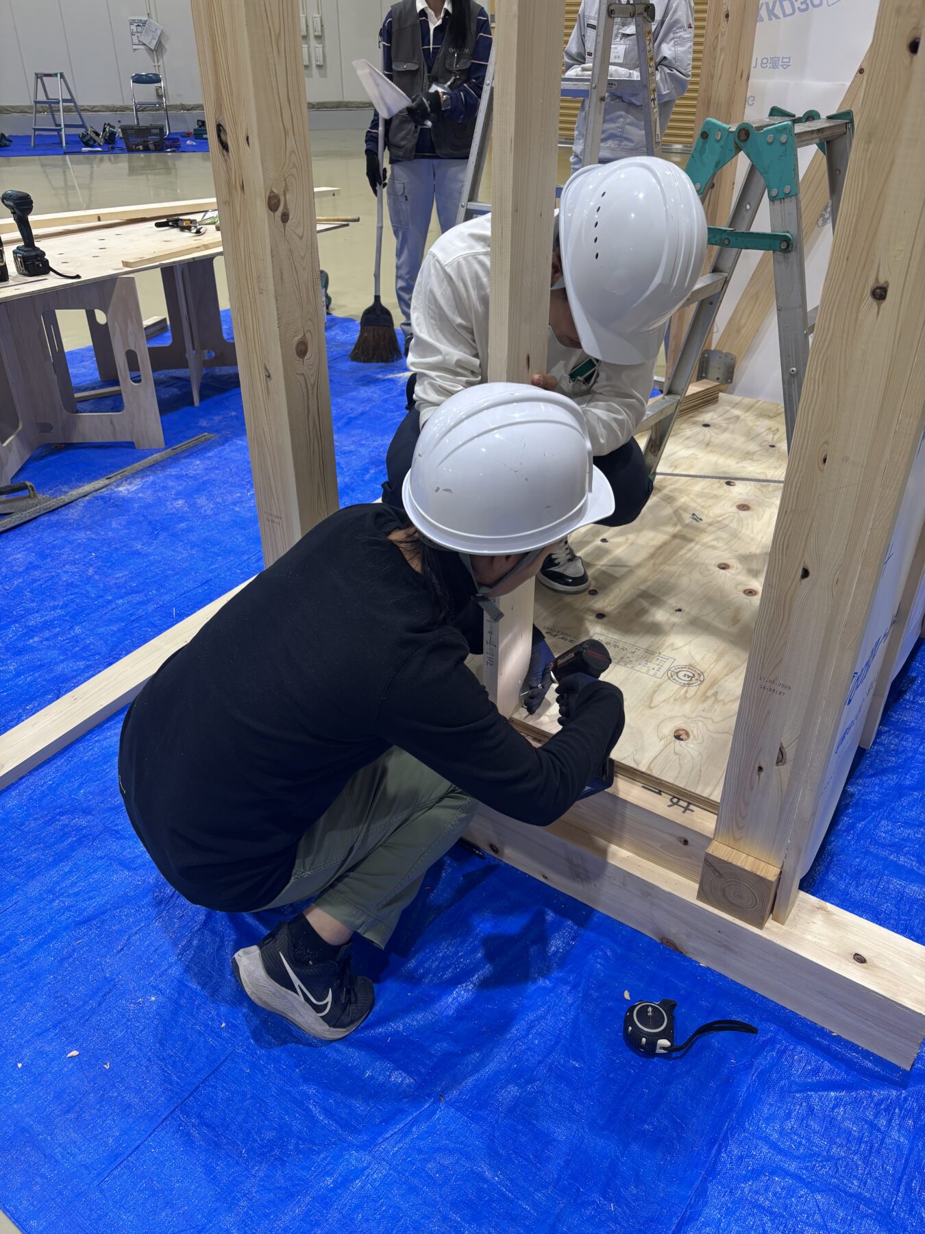 研修内容は断熱材の施工だったのですが、自分たちで軸組を組んで断熱材をつめていきました。