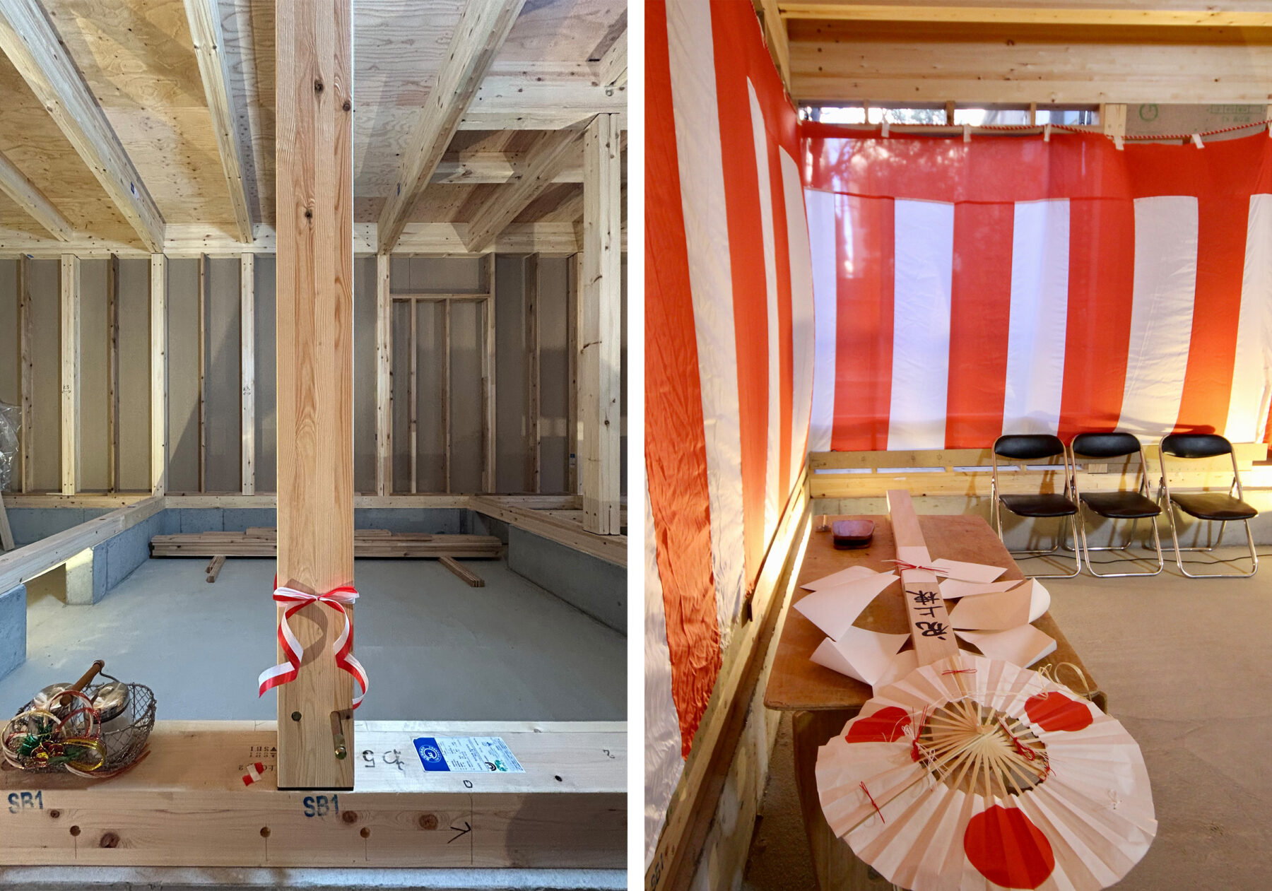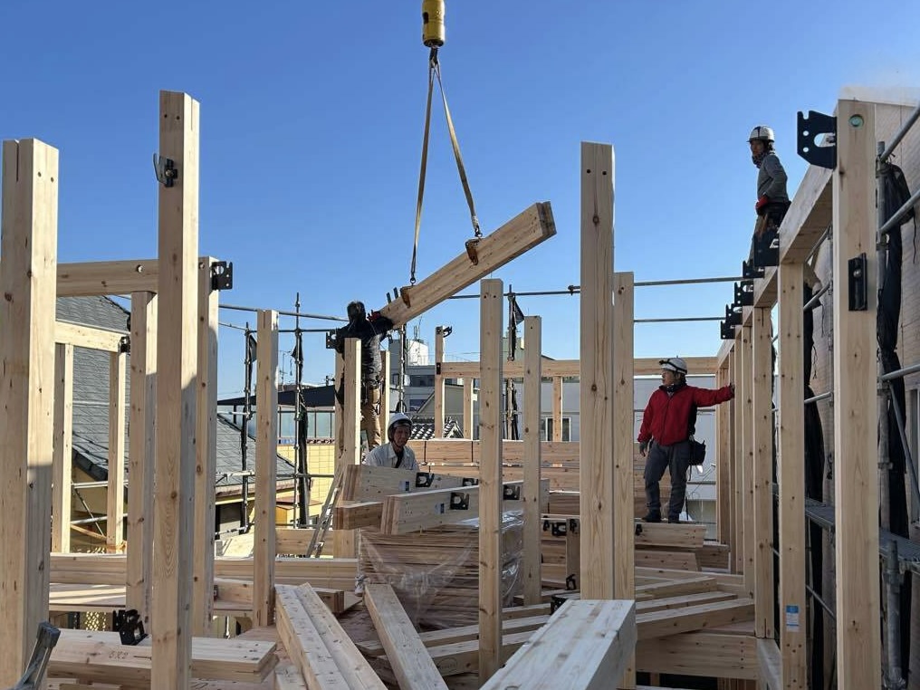 地鎮祭時には更地だった場所に家の枠組みが姿を現すその様は正に圧巻。