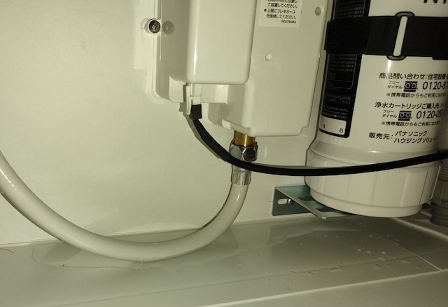 確認すると、配管のつなぎ目が少しゆるんでいる状態でした。