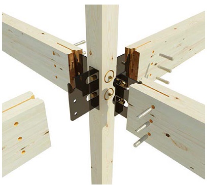 梁を受ける金物は第一ピンに引っ掛ける形状となっている為、第一ピンの打ち込みが出来ていれば、梁が落ちることなく、次々と組み上げていけます。
