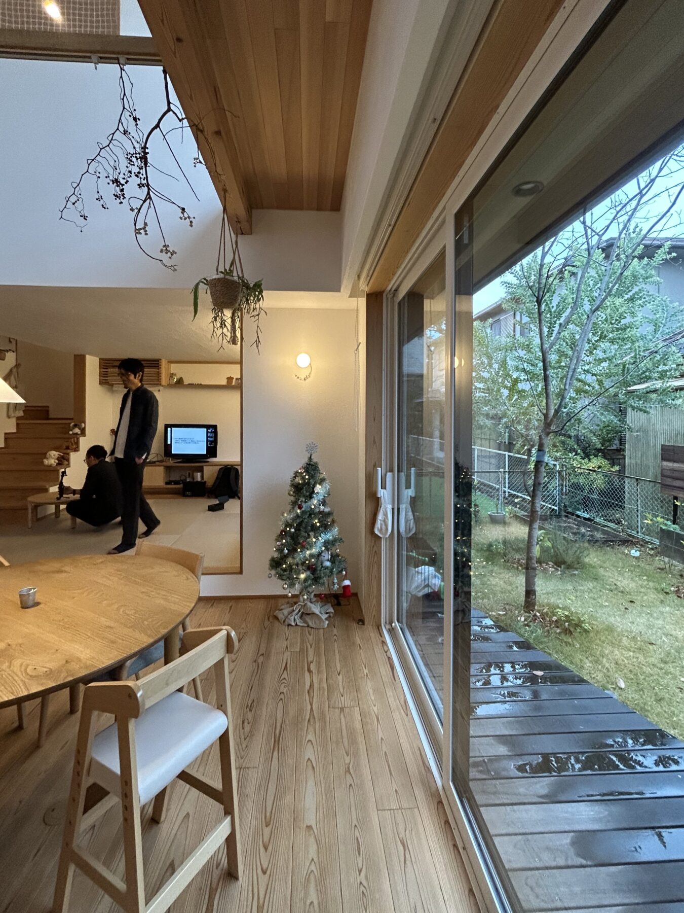 庭とゆるやかにつながるダイニングキッチン、畳でくつろぐリビング。
